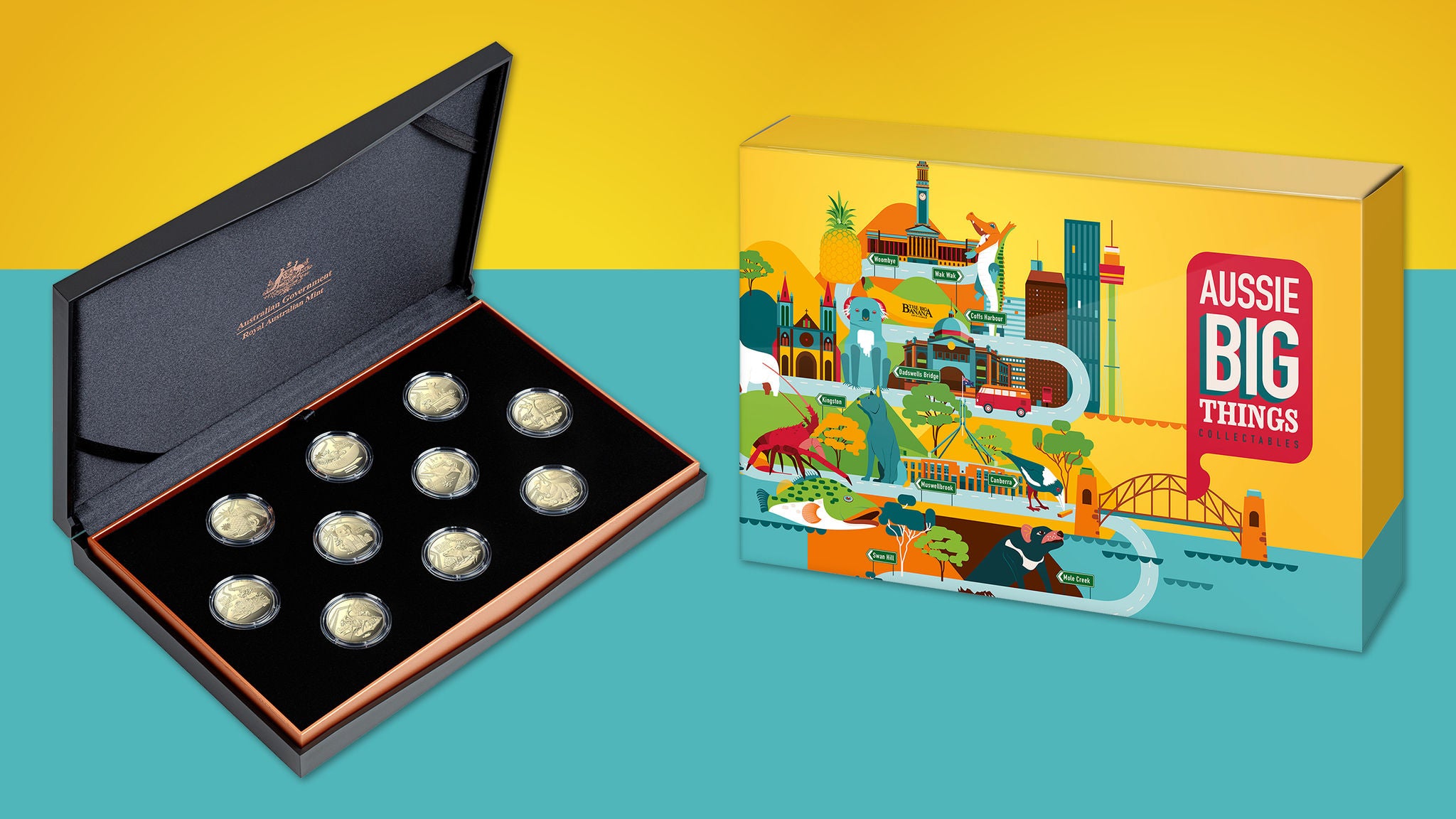 Presented in a beautiful display box, the set features expertly minted renditions of all 10 Aussie Big Things coins.