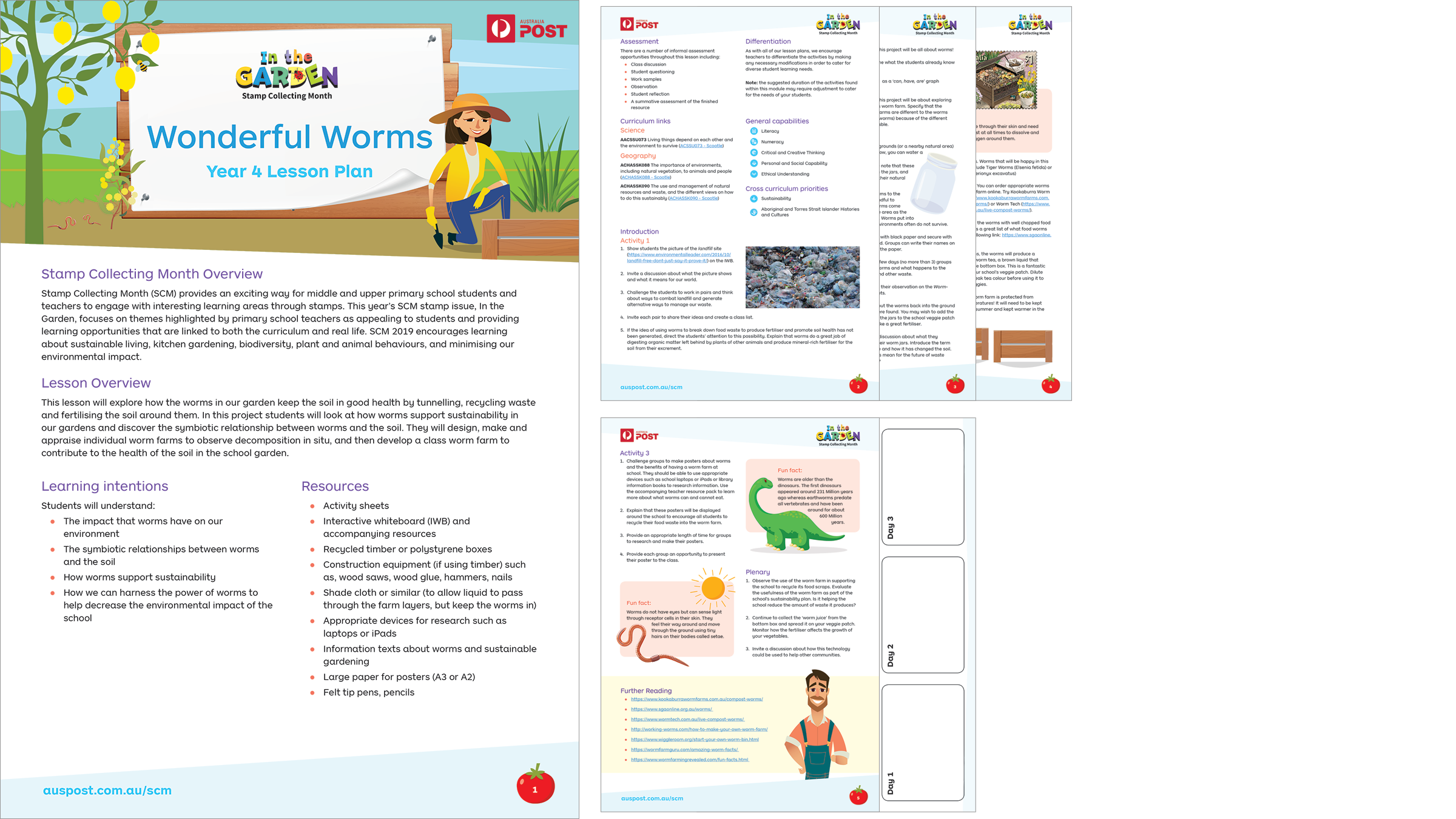 Stamp Collecting Month (SCM) is all about engaging middle to upper primary school students (and their teachers) with interesting themes, presented through stamps. This website explores a range of topics related to sustainable gardening and our In the Garden stamp issue. It also contains videos, fun activities, teaching resources and more.