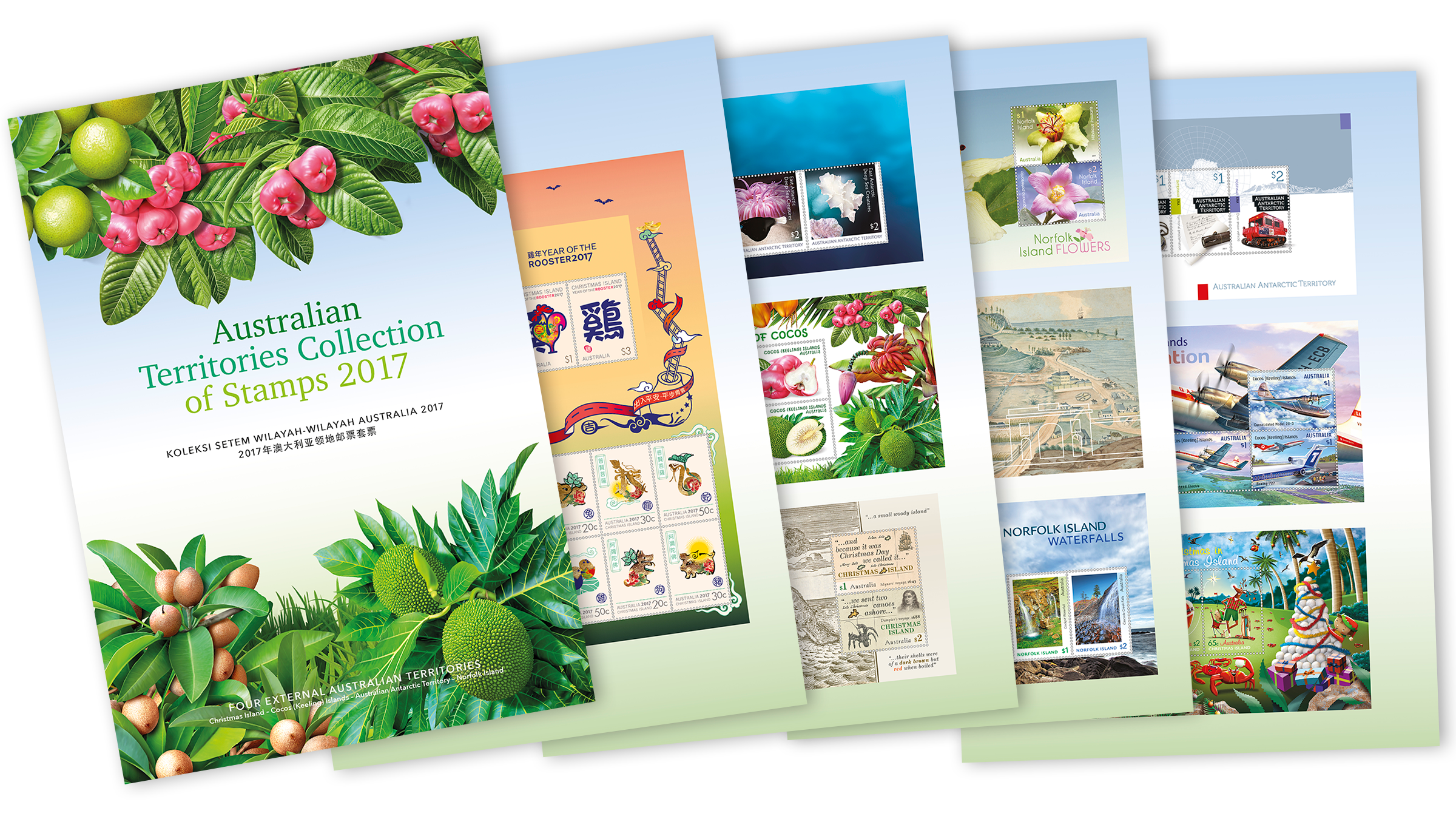 The Australian Territories Collection of Stamps 2017 presents the stamp issues from our Australian Territories program for 2017, spanning the Australian Antarctic Territory (AAT), Christmas Island, Cocos (Keeling) Islands and Norfolk Island.