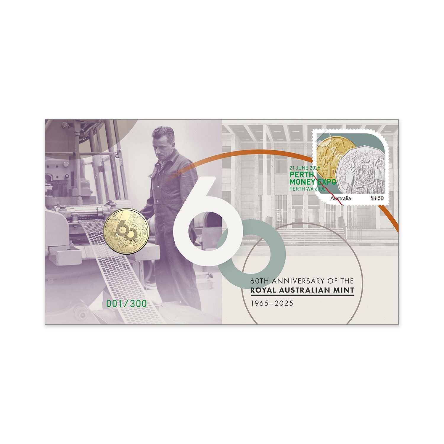 Only 300 of the RAM 60th Anniversary PNC has been produced, with 150 to be released each day. This PNC features $1 AlBr uncirculated 'Envelope' Privy Mark coin from Royal Australian Mint as well as a coloured and foiled daily postmark at $35 RRP each.