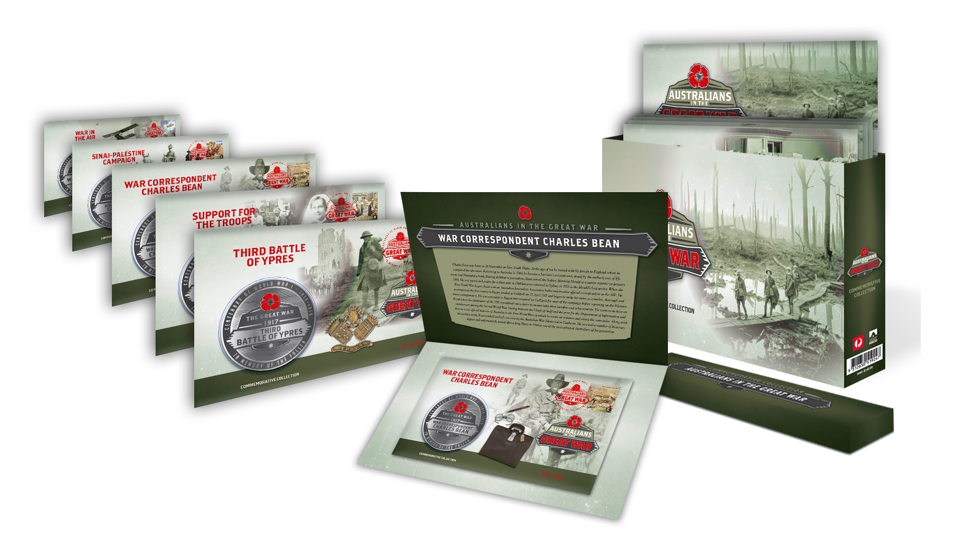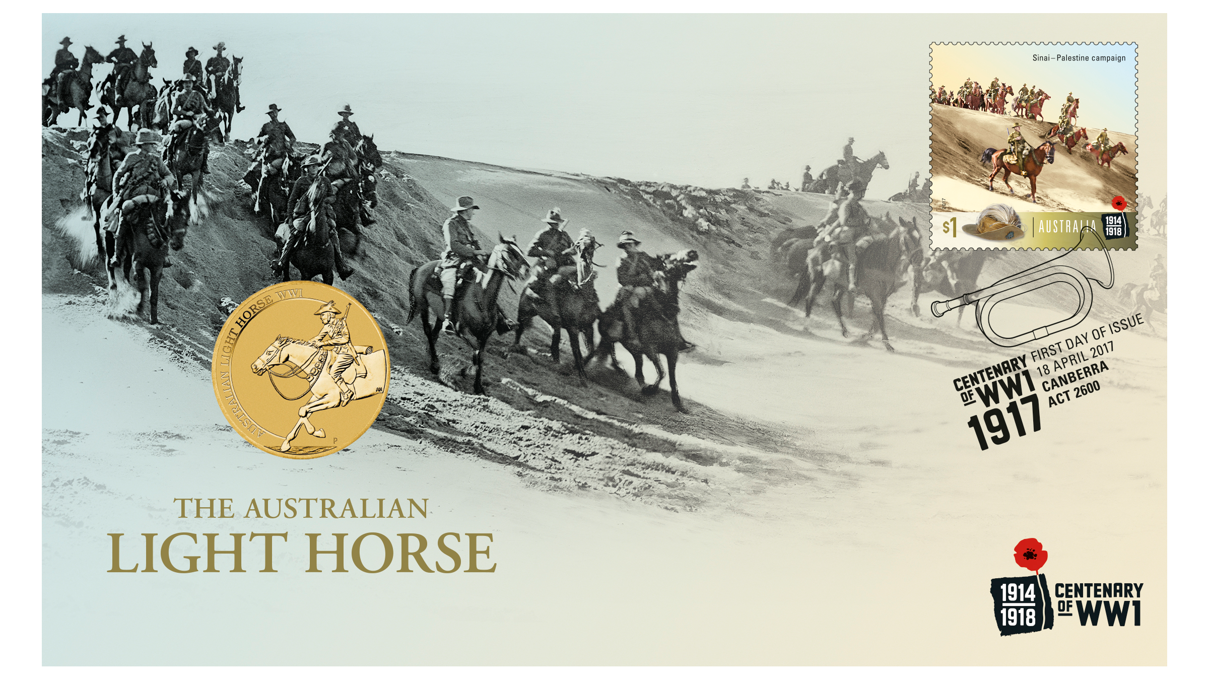 The stamp issue includes a limited edition Western Front postal numismatic cover (PNC) from the Perth Mint, featuring an Australian Light Horse coin; a limited edition Third Battle of Ypres medallion cover from the Perth Mint; and a limited edition ANZAC PNC from the Royal Australian Mint.
