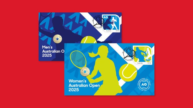 2025 marks 120 years of the Australian Open and for AO25, we're serving up a Men's and Women's Australian Open $2 coloured coin with Privy Mark in individual collector packs. There’s a 1 in 10 chance of scoring the special Men’s and Women’s coloured coin with Privy Mark in these packs. Plus, a MyStamps Stamp Pack, Medallion Cover and more.