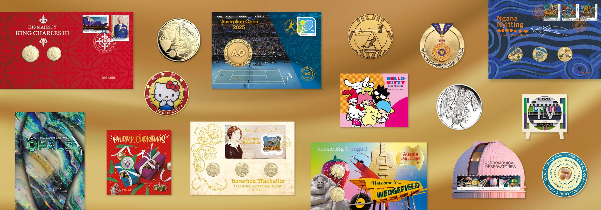 The catalogue (PDF 8.8MB) contains 20 pages including Postal Numismatic Covers (PNCs), medallion covers, minisheet collections, compilations, numismatics, collecting accessories, sports and military-themed collectables and more.