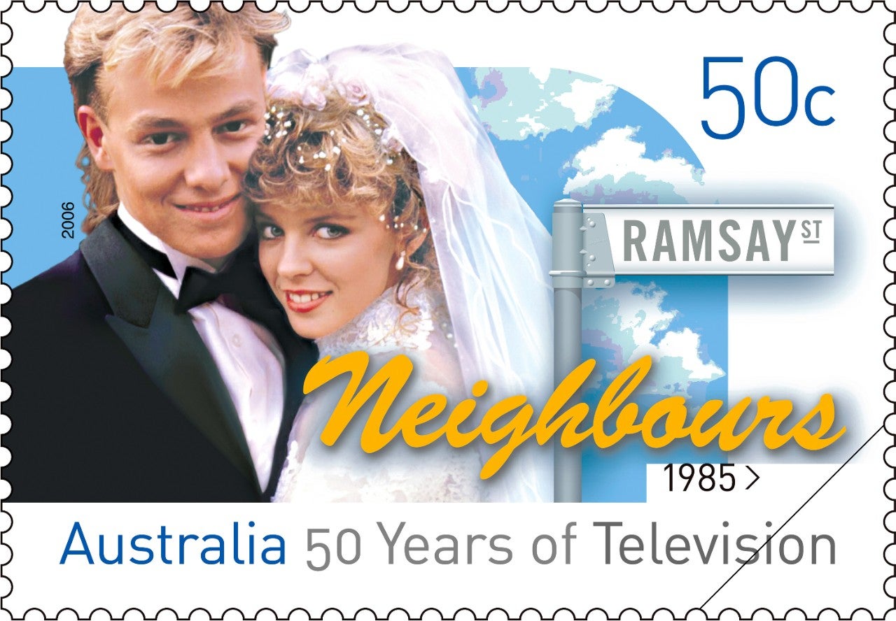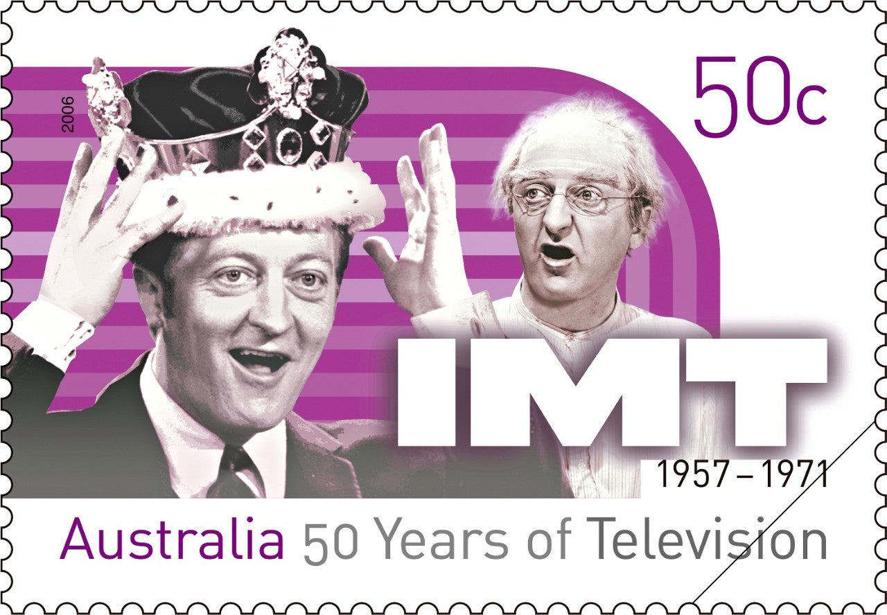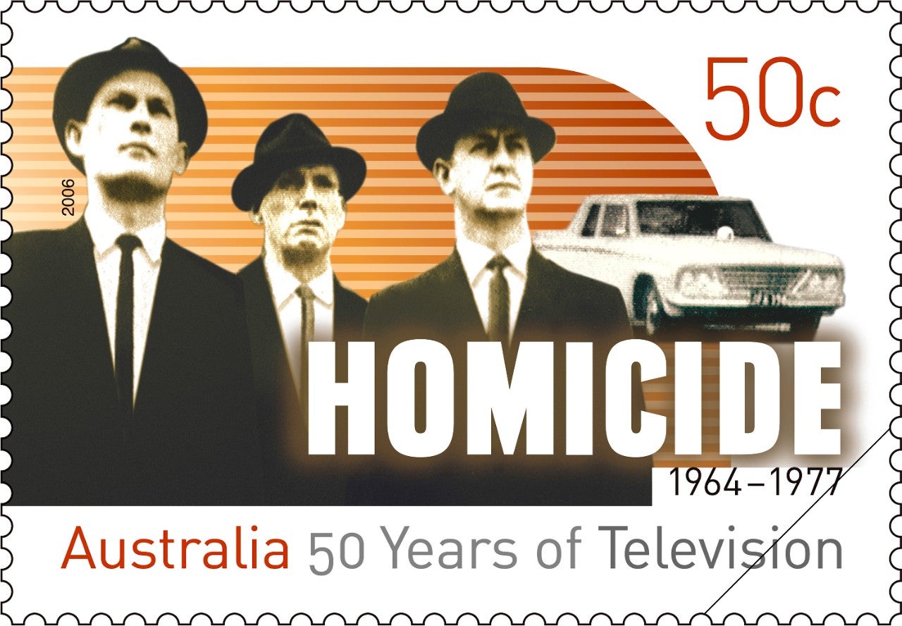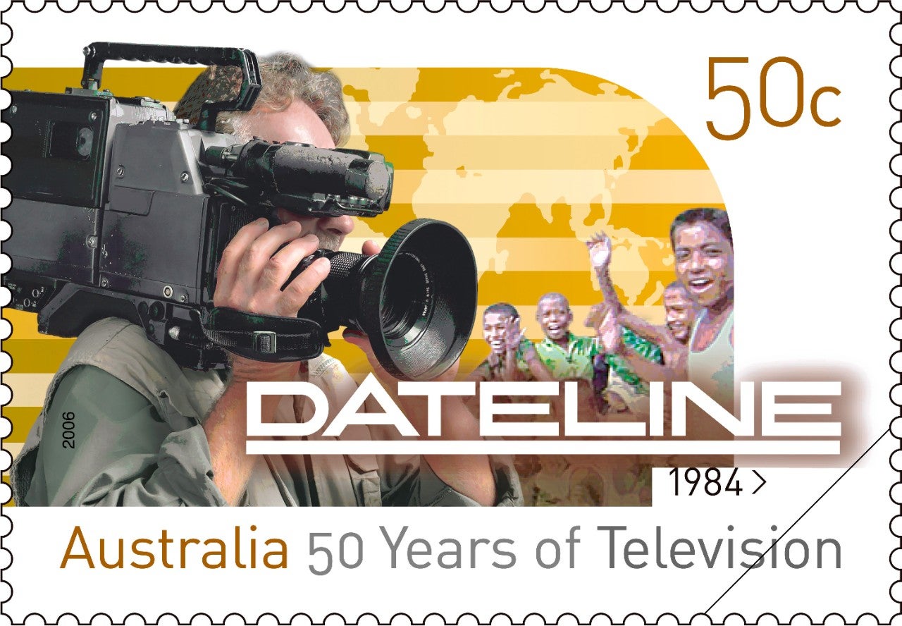 To give just one example, consider the 2006 stamp issue 50 Years of Television, which uses a layered approach. Each design has two pictorial elements and the title signature to flag the program being used to represent a decade of television history. At a more subtle level, the shape of the pictorial zone suggests a television screen and the lines that cross it (or not) denote the evolution of the technology. The issue title and each program date have been introduced to help make the single designs meaningful when seen in isolation. If you consider the five together, however, you will see that they show not only different eras but also different genres of program, and they represent Australia’s two public and three commercial television broadcasters.