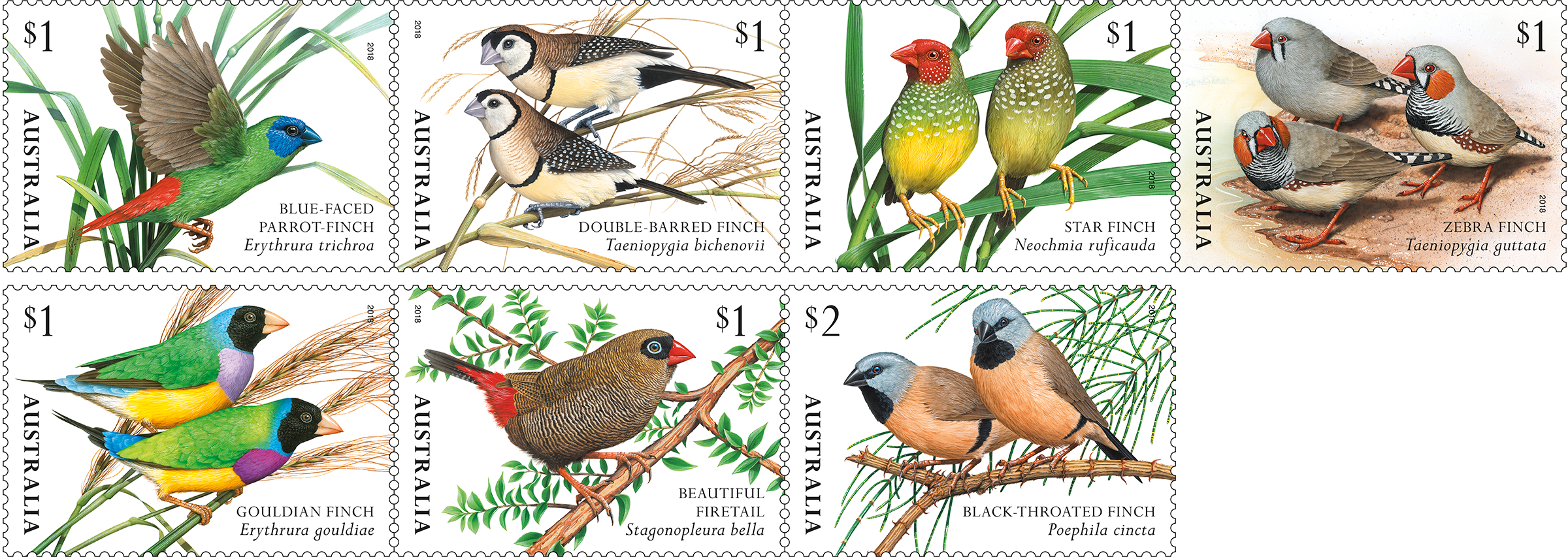 The Finches of Australia stamp issues (part one and part two) are available now, online, at participating Post Offices and via mail order on 1800 331 794, while stocks last.