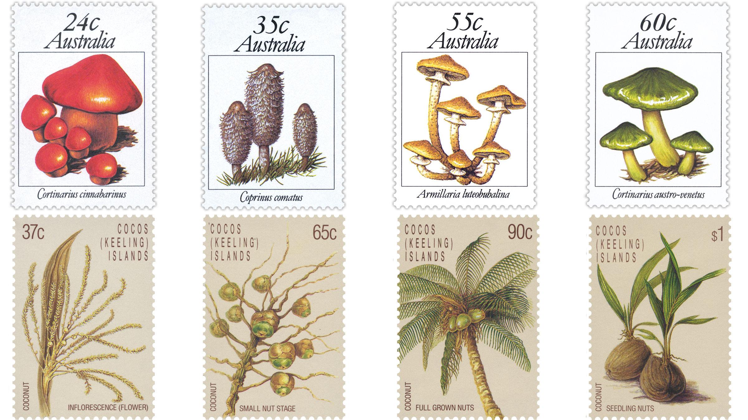 The Banksias stamp issue, which will be released on 20 February 2018, celebrates this iconic native flowering plant. The stamps feature the artwork of celebrated Australian botanical artist Celia Rosser. Stamp collectors may already be familiar with Celia’s work, through her incredible illustrations for the 1981 Australian Fungi stamp issue and the 1987 Cocos (Keeling) Islands stamp issue that depicted the life-cycle of the coconut. Celia’s beautiful banksia illustrations also featured on a series on pre-stamped envelopes, in 1996.