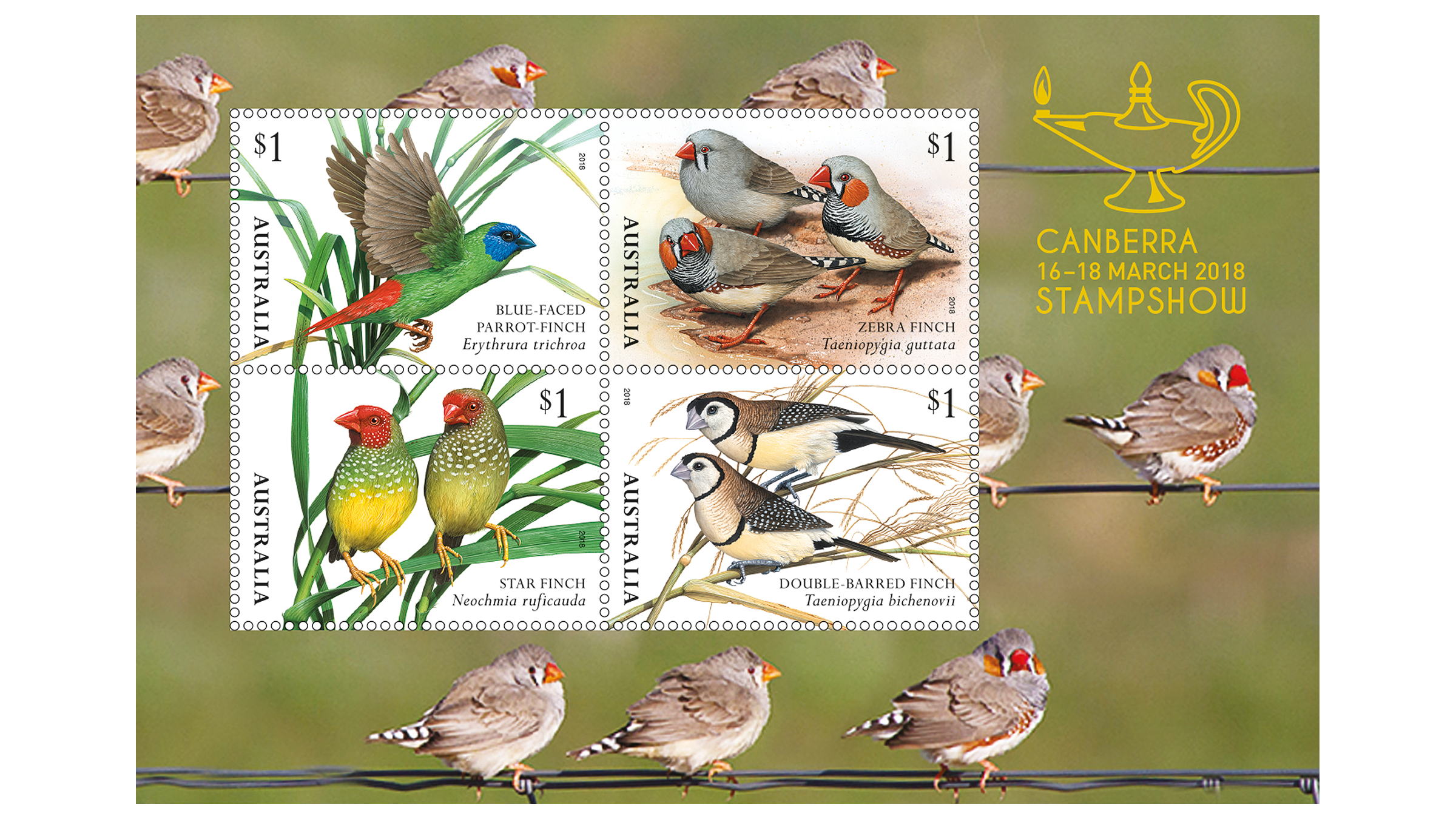 This attractive minisheet features the four attractive stamps that comprise the Finches of Australia stamp issue, released on 16 March 2018.