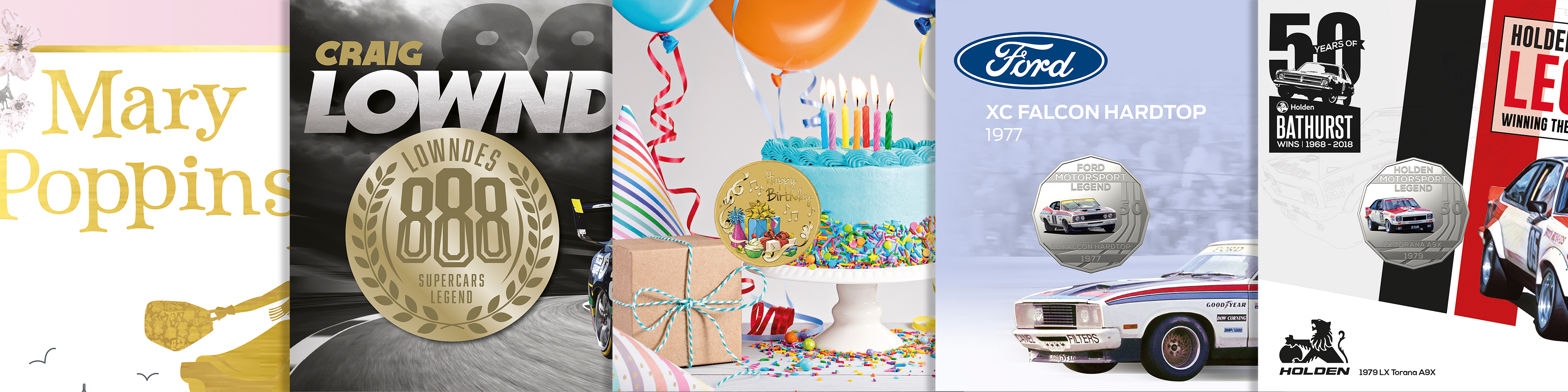 Car fans will continue to get revved up on 15 January, as we go back to the 70s and release the Ford 1977 XC Falcon Hardtop PNC and the Holden 1979 LX Torana A9X PNC. Each cover contains a coloured uncirculated 50 cent coin from The Royal Australian Mint featuring a design based on each iconic car model.