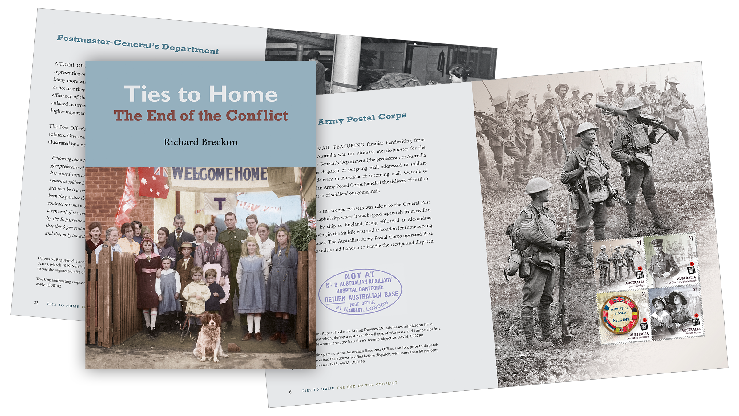 As well as the standard range of products, collectors will enjoy the many special additions to the products range. There’s a prestige booklet Ties to Home: The End of the Conflict, the final in a series of five discusses the role of the postal service throughout World War I, including the role mail played in boosting the morale of the troops. It also includes names on a roll of honour that recognises the officers of the Postmaster-General’s Department who lost their lives, or were reported missing, while on active service during the Great War.