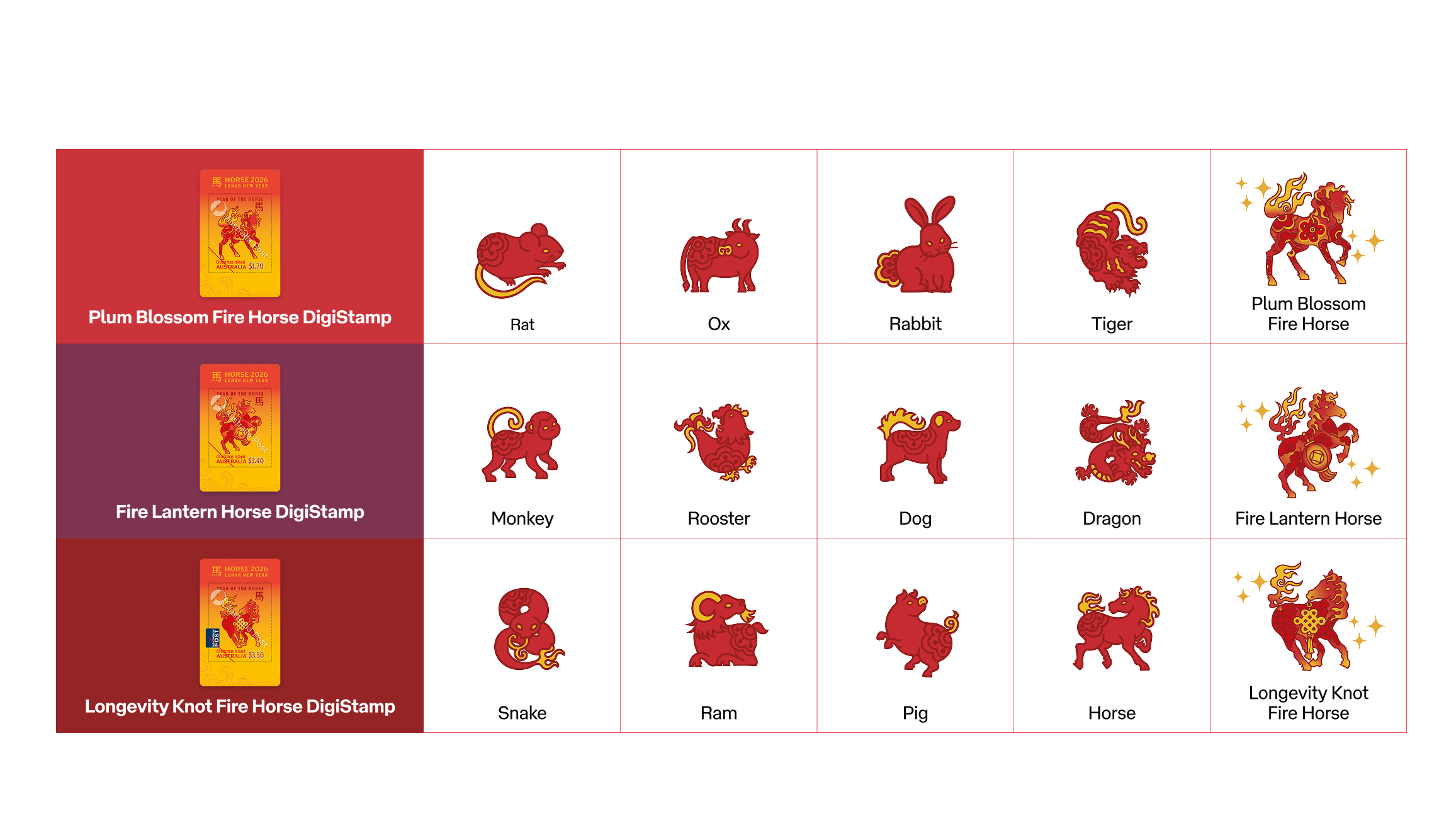 Each of the three DigiStamps has five possible digital tokens to collect. Each Lunar New Year zodiac animal is available in equal numbers with a total of 15 digital tokens to find across the three DigiStamps.
