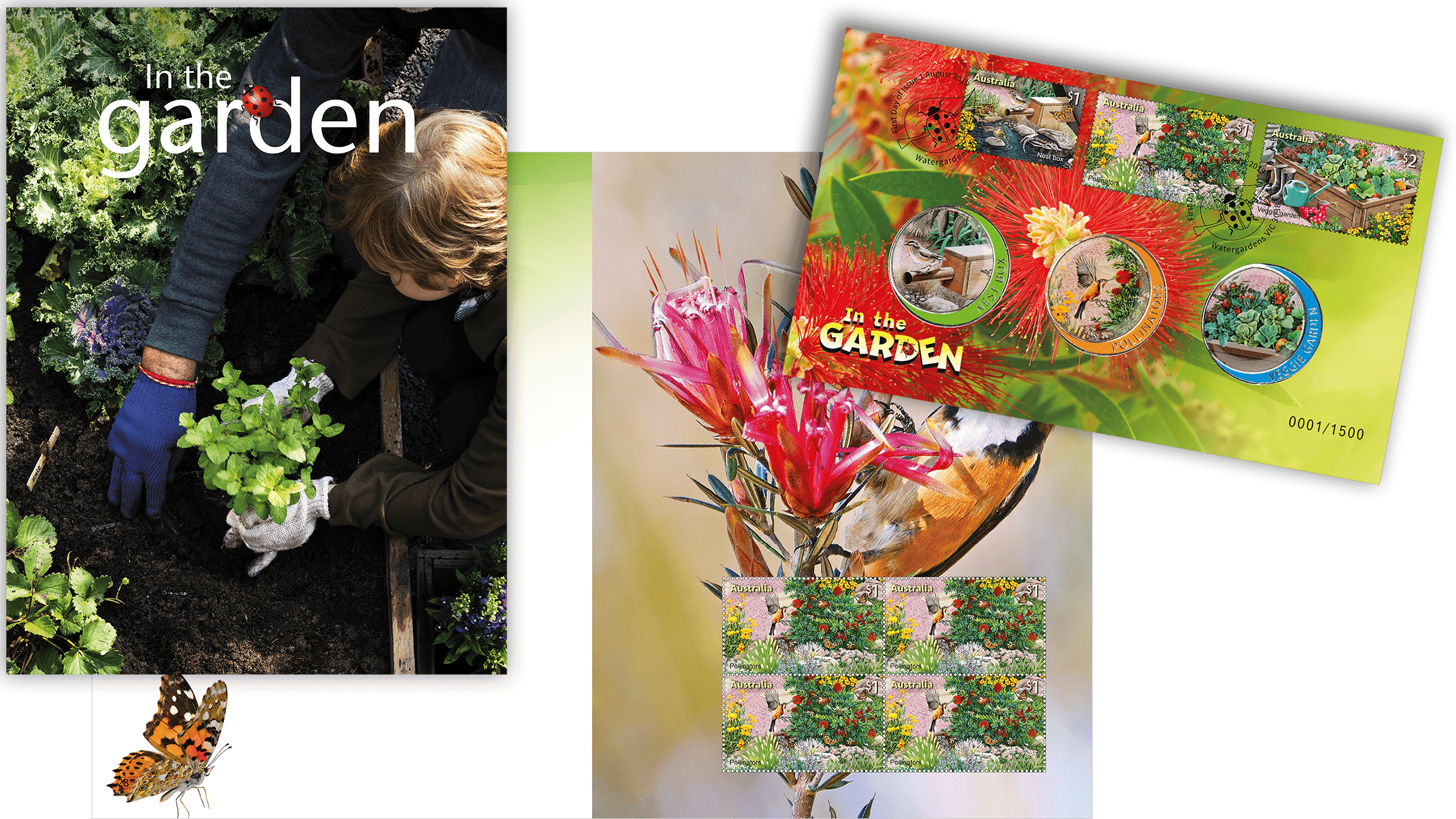 Released with the stamp issue is a range of appealing products, including two medallion covers (one with a set of three garden-themed medallions) and a prestige booklet that describes in more detail how we can easily incorporate sustainable gardening practices at home and in the community.