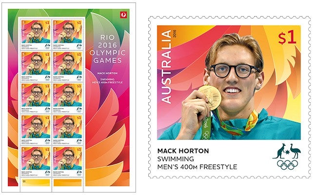 For each Australian gold medal performance at the Rio 2016 Olympic Games to date, Australia Post has produced a stamp in a sheetlet of 10. The stamp designs feature the athletes at their medal presentation ceremonies and have been made available for purchase within days of each presentation ceremony.