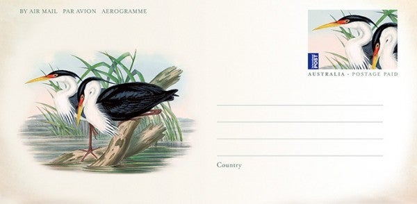 Commencing in 1993, the denomination for the aerogramme fee was replaced in the stamp image area by “Postage Paid”, which allows aerogrammes to remain on sale following a rate change.Aerogramme themes have spanned a range of Australian flora, fauna, pastimes and places of interest – from Shearing and Surf Board Riding in 1982 to Threatened Marsupials in 2001 and Waterbirds in 2009.