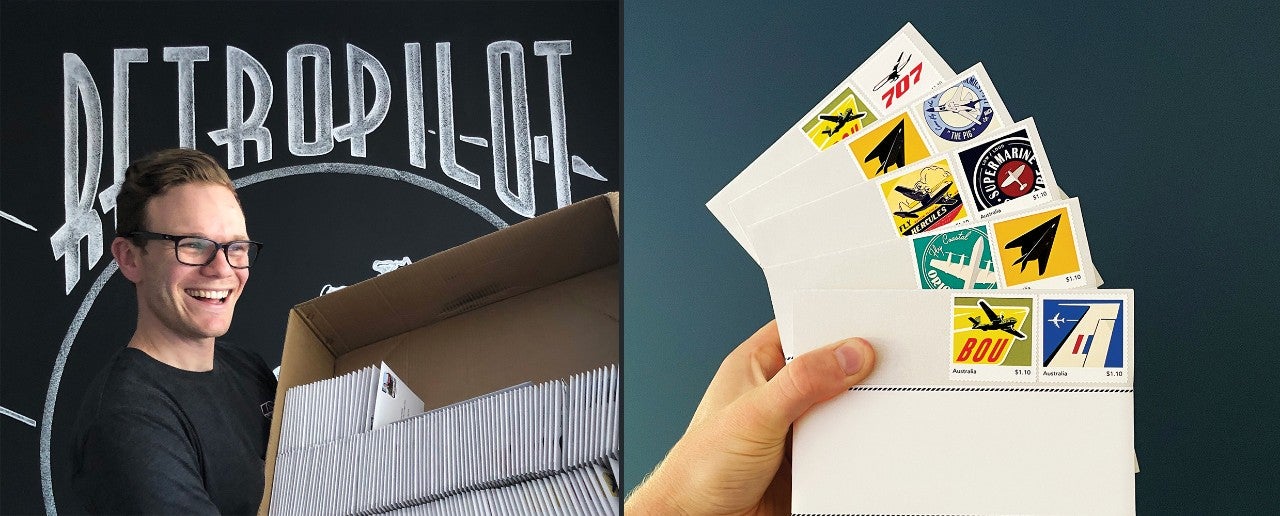 There are currently six designs in limited-edition circulation, and every order delivered across Australia features customised Retropilot-designed stamps.