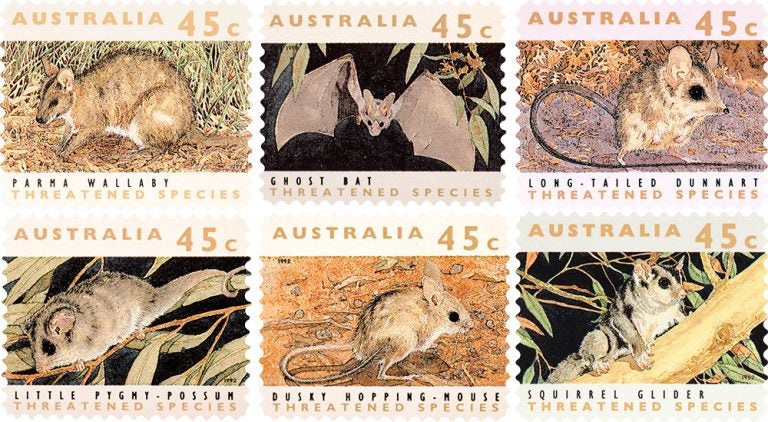 Australia Post’s market research showed that the public wanted to see more than just one base rate self-adhesive stamp. This led to the release of six designs as part of the 1992 Threatened Species issue.