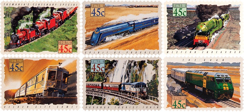 The next development was to supplement definitive issues with a self-adhesive version of the regular issues of commemorative and special stamps. The practice, which continues today, began with the 1993 Trains stamps. And since 1995, the Australia Post Christmas stamps have been issued in self-adhesive booklets of 20 stamps.