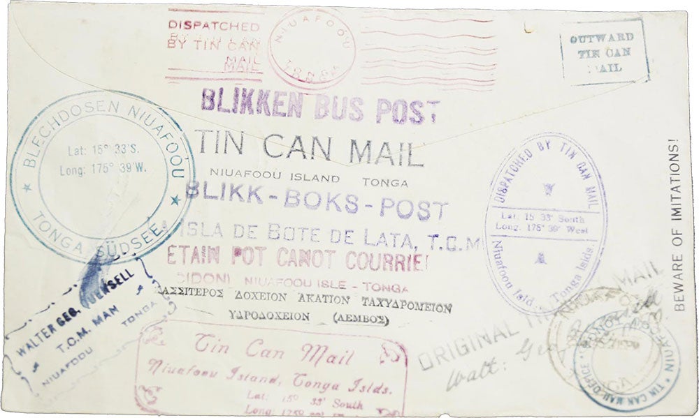 Tin Can Mail envelopes are very popular with collectors even today, as they tell a remarkable story about the enterprise of a small group of Pacific Islanders who made deliveries on one of the world’s most unusual mail routes. Walt Quensell’s service was so famous that even today the island where it all happened, is known to most people as Tin Can Island. In 1958 Niuafo’ou was resettled and the Tin Can Mail restarted. It lasted until the airport was opened in 1983.
