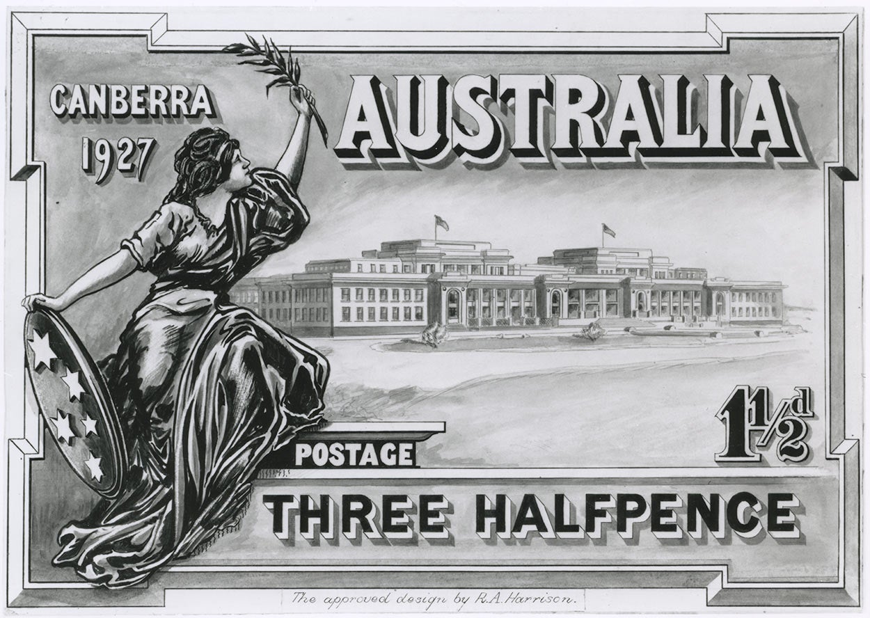 Until the mid-1920s, the Australian Post Office continued its practice of issuing stamps just for postal requirements, and it avoided producing stamps for commemorative occasions. This policy came to an end in 1927 when the first Australian Commonwealth commemorative stamp was issued for the opening of Parliament House in Canberra.