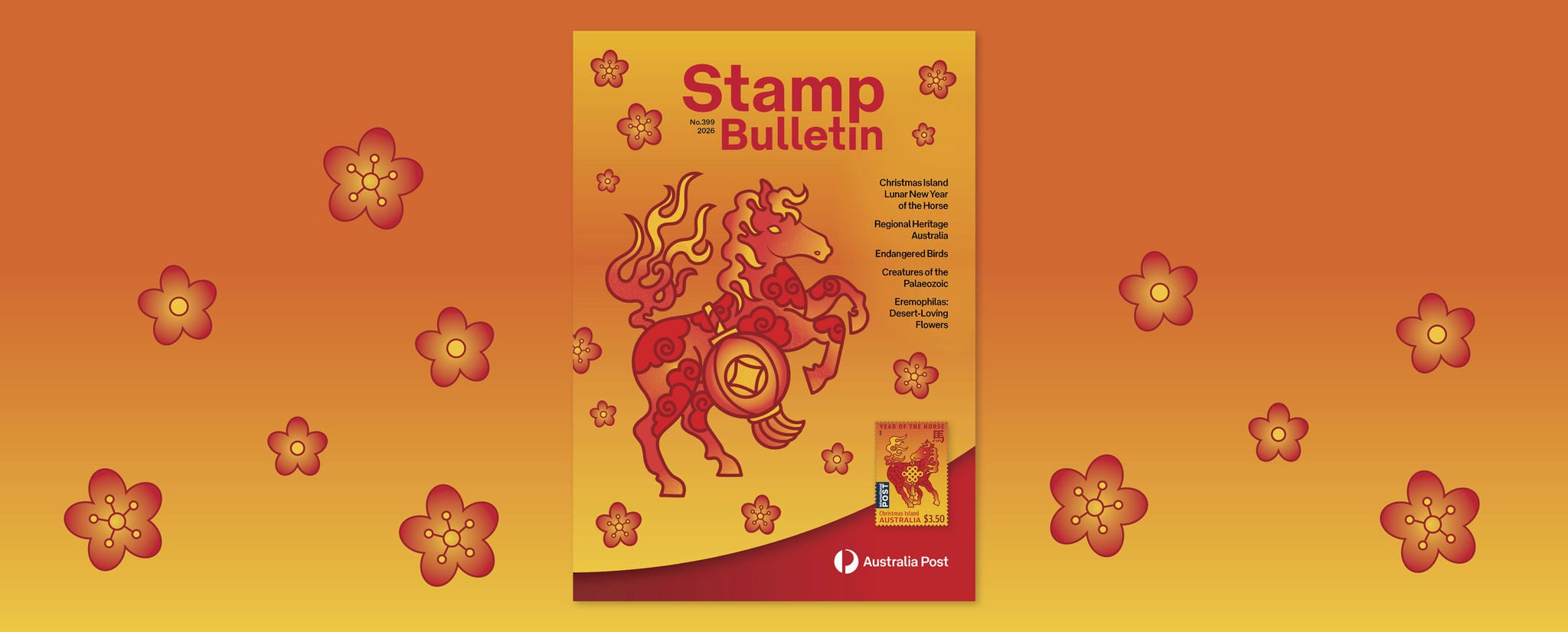 Stamp Bulletin 399 begins with celebrating Lunar New Year – Year of the Horse, available from 6 January 2026. The stamp issue, featuring elegant illustrations by Chrissy Lau, captures the spirit and vitality of this celebrated zodiac sign as we mark the beginning of an inspiring new year.