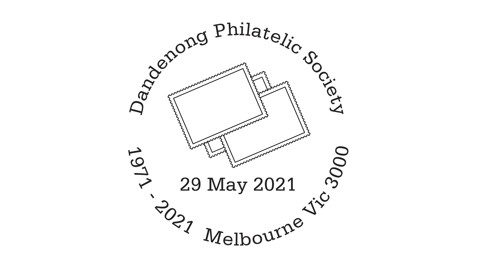 Postmark text: Melbourne VIC 3000 | Dandenong Philatelic Society | 1971-2021 | 29 May 2021