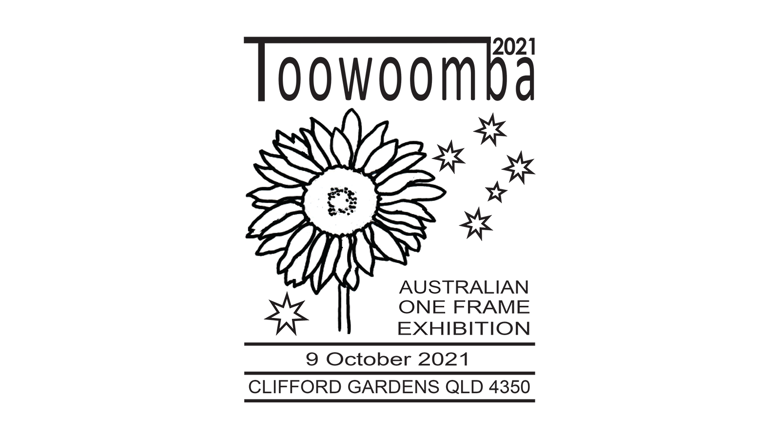 Postmark text: Clifford Gardens QLD 4350 | Toowoomba Australian One Frame Exhibition