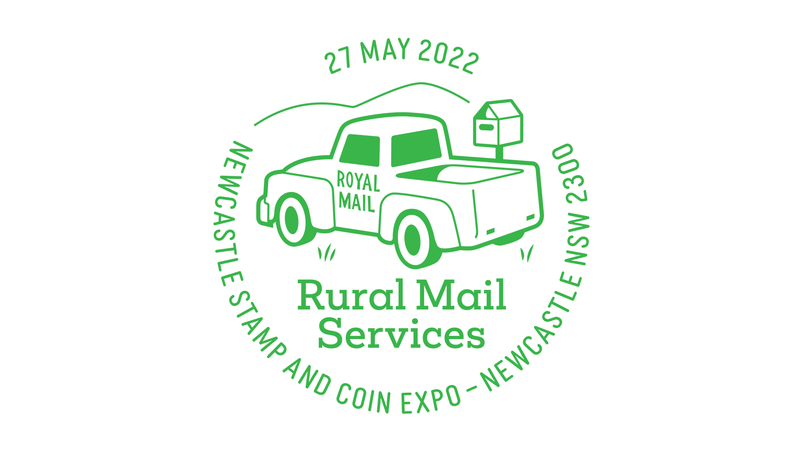 Postmark text: Newcastle Stamp and Coin Expo | Newcastle NSW 2300 | 27 May 2022 | Rural Mail Services
