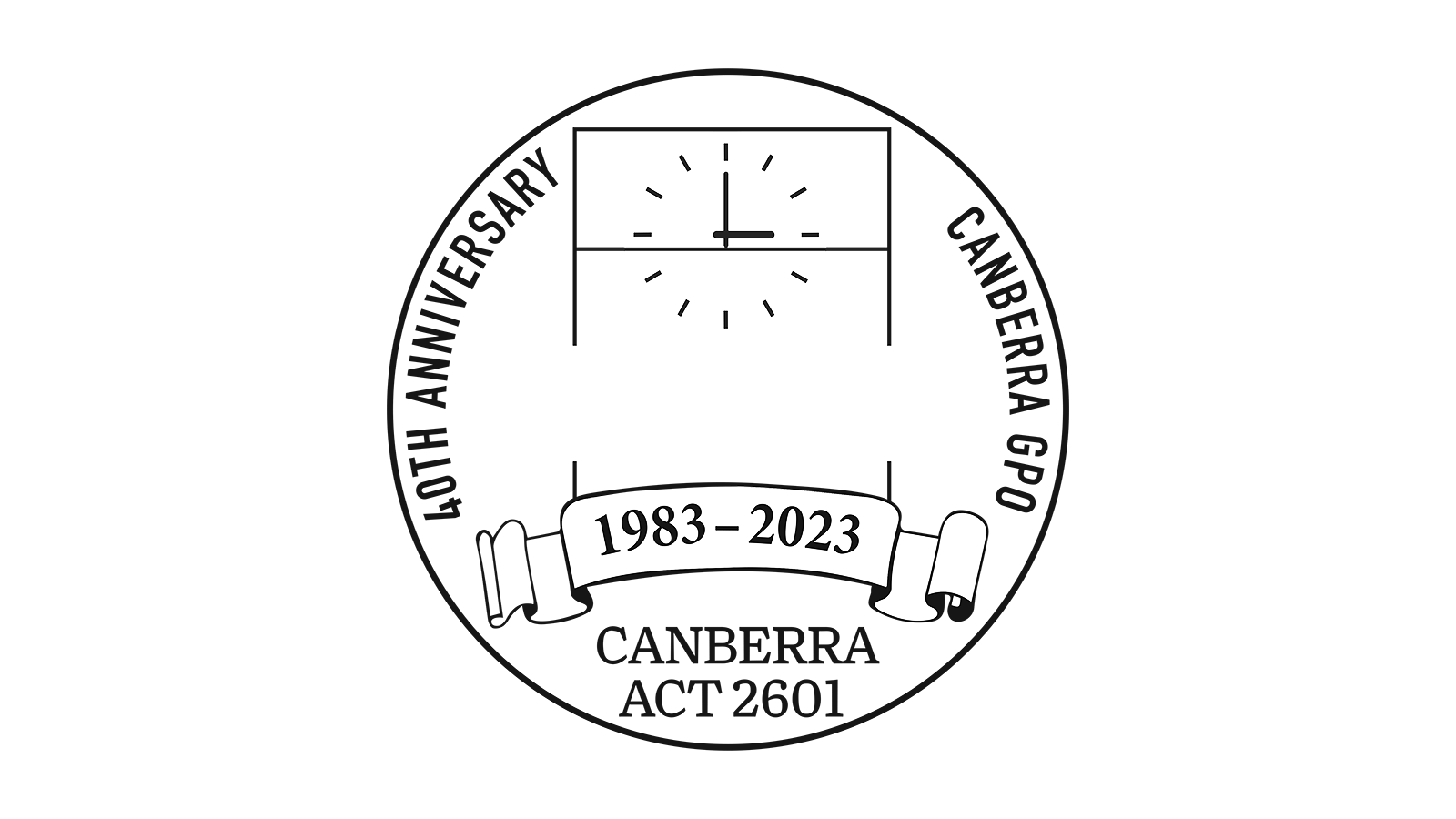 Text: Canberra ACT 2601 | 40th Anniversary Canberra GPO | 1983-2023