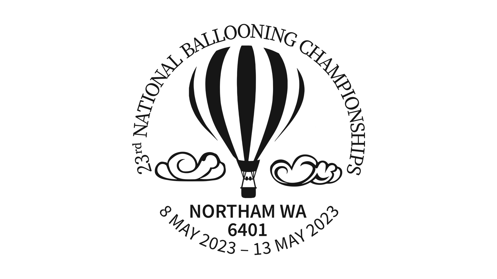 Text: Northam WA 6401 | 23rd Australian National Ballooning Championships | 8 May 2023 - 13 May 2023