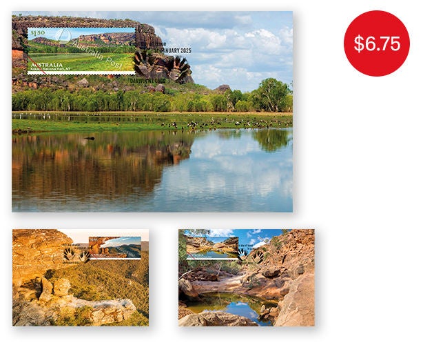 The stamp photograph of Anbangbang Billabong, Kakadu is by Geoff Whalan.