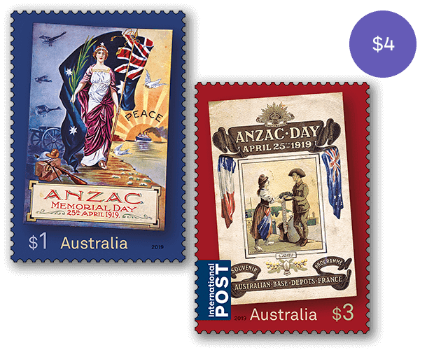 This set of stamps contains the two stamps from the Anzac Day 2019 stamp issue.