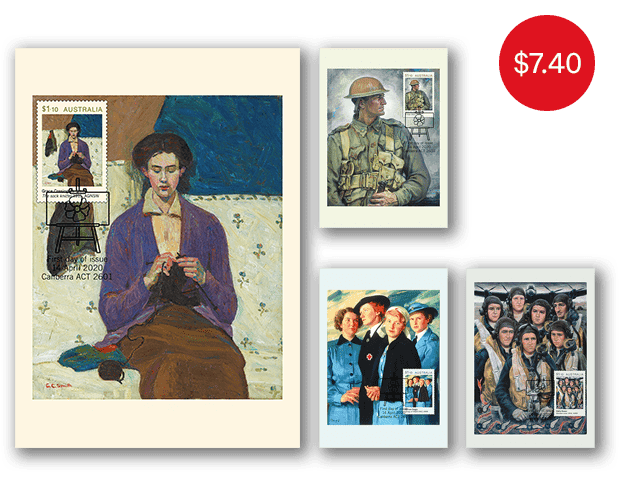 This maxicard set contains the four maxicards from the Anzac Day 2020 stamp issue.