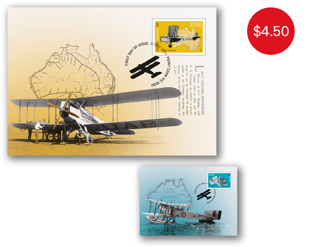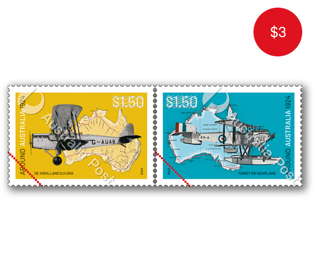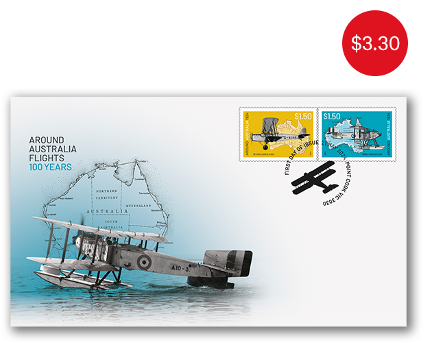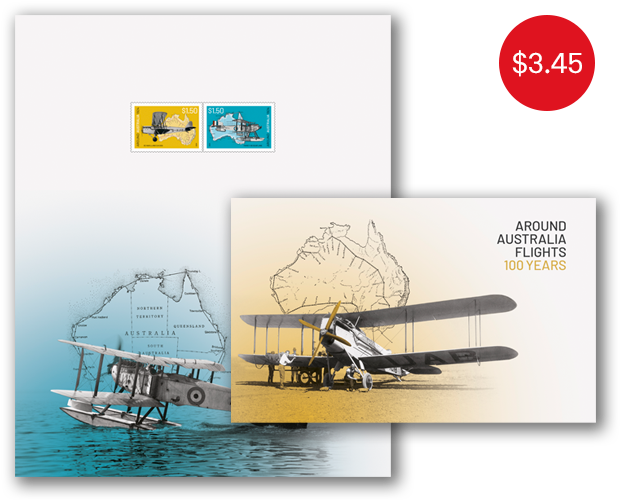 This stamp pack from the Around Australia Flights stamp issue presents the two stamps in a quality folder.