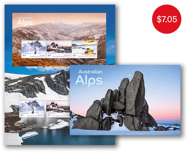 The Australian Alps stamp pack contains all three stamps and minisheet from the stamp issue presented in high quality folder.