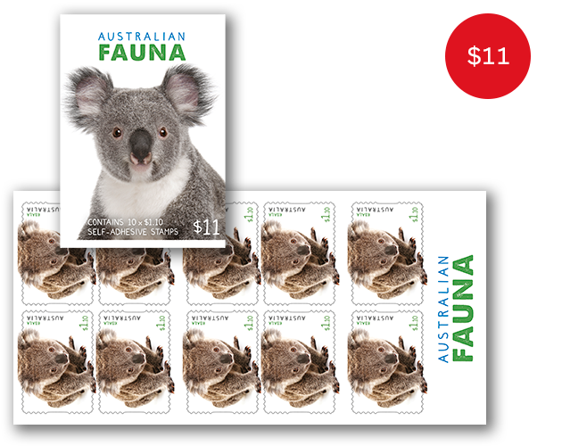 This booklet contains 10 x $1.10 self-adhesive Koala stamps from the Australian Fauna II stamp issue.