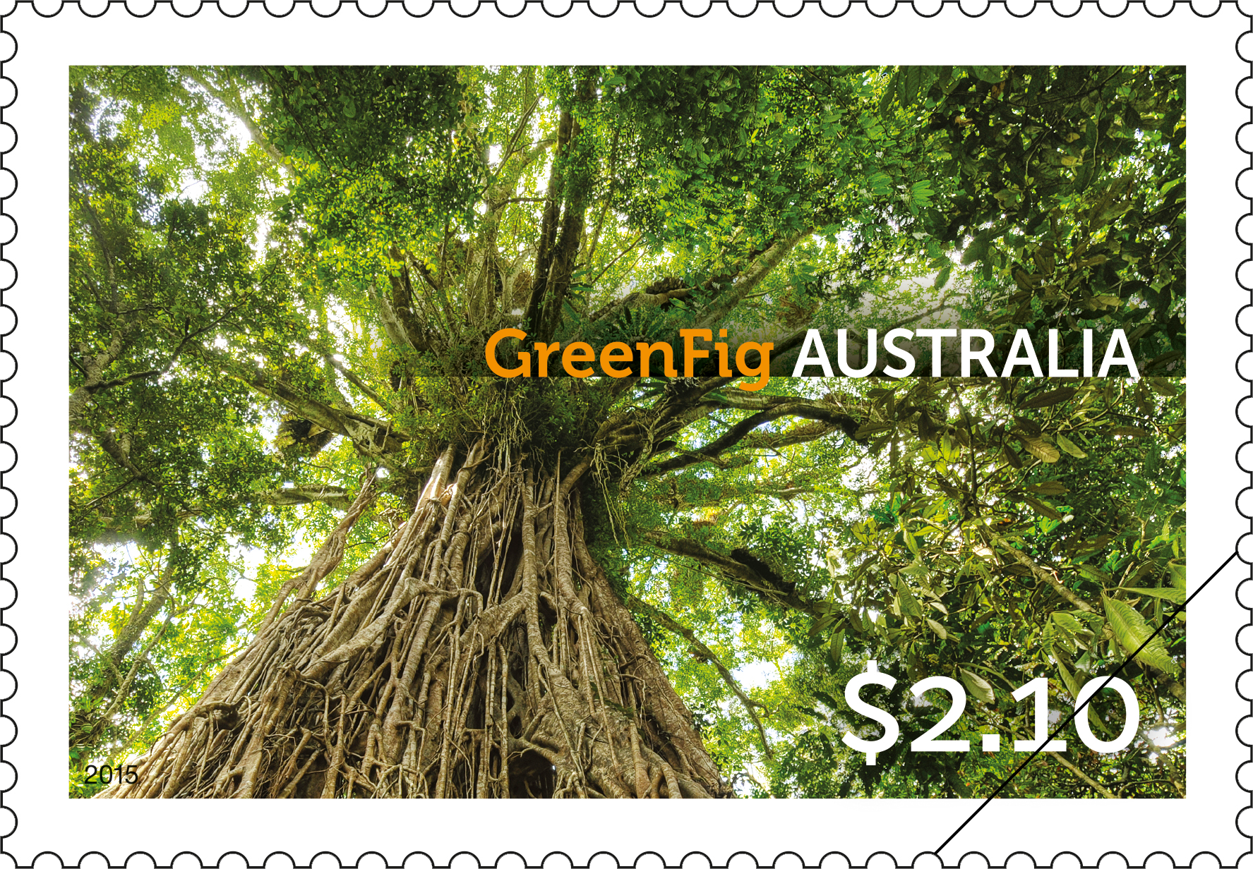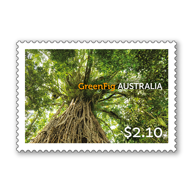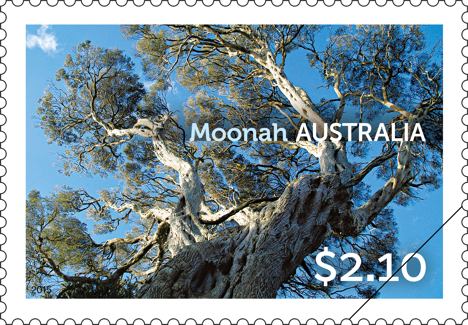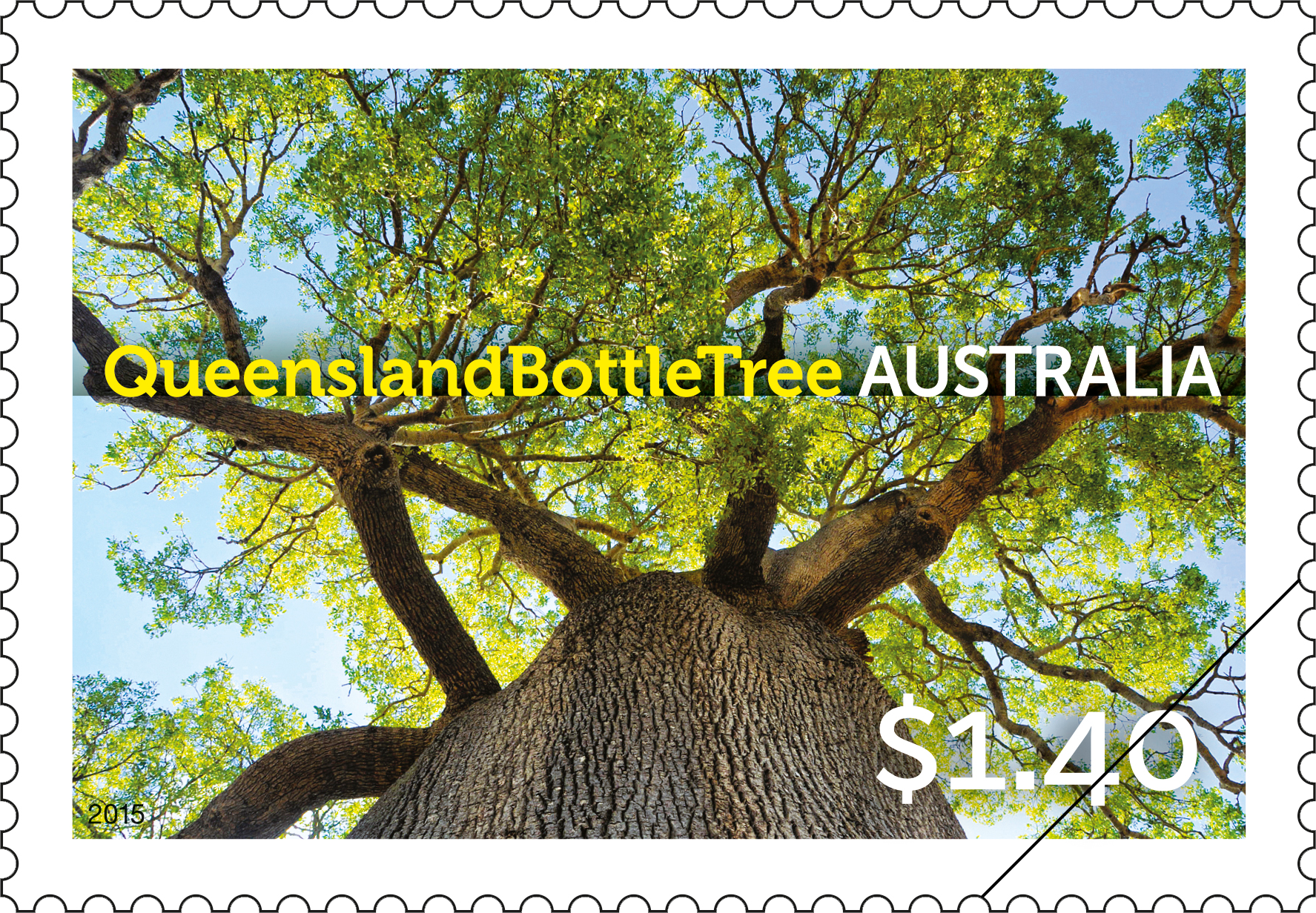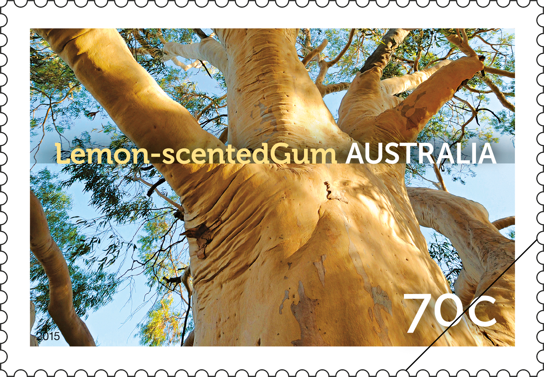 The photographer is Kimbal Baker. His photographs of Australian trees appear in the publication Australia’s Remarkable Trees, Melbourne University Press, 2010, reprinted 2014. The stamp images were photographed from below the tree, and show the unusual and striking perspective of the upper canopy.