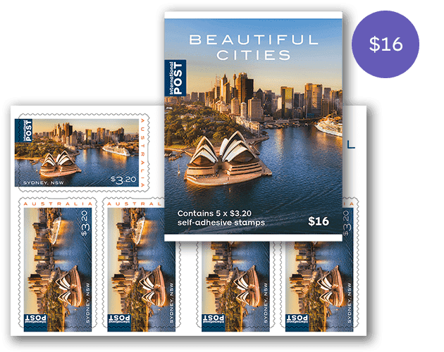 The city of Sydney, New South Wales, was established in 1788 on the lands of the Gadigal people of the Eora nation. With more than five million residents, today Sydney is the most populous of our state capitals. The famous Sydney Opera House is situated on Bennelong Point on the spectacular Sydney Harbour, which is featured on the stamp.