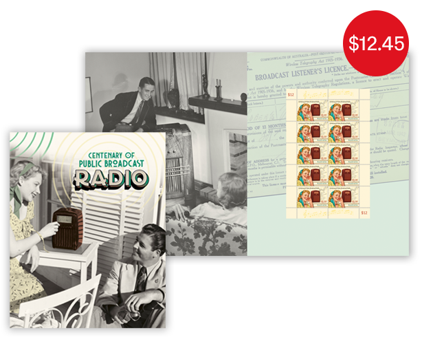 This sheetlet pack is from the Centenary of Public Broadcast Radio stamp issue and presents the 10 x $1.20 stamps in a quality folder.