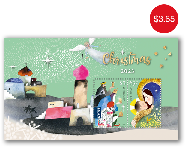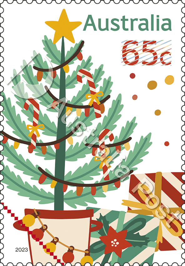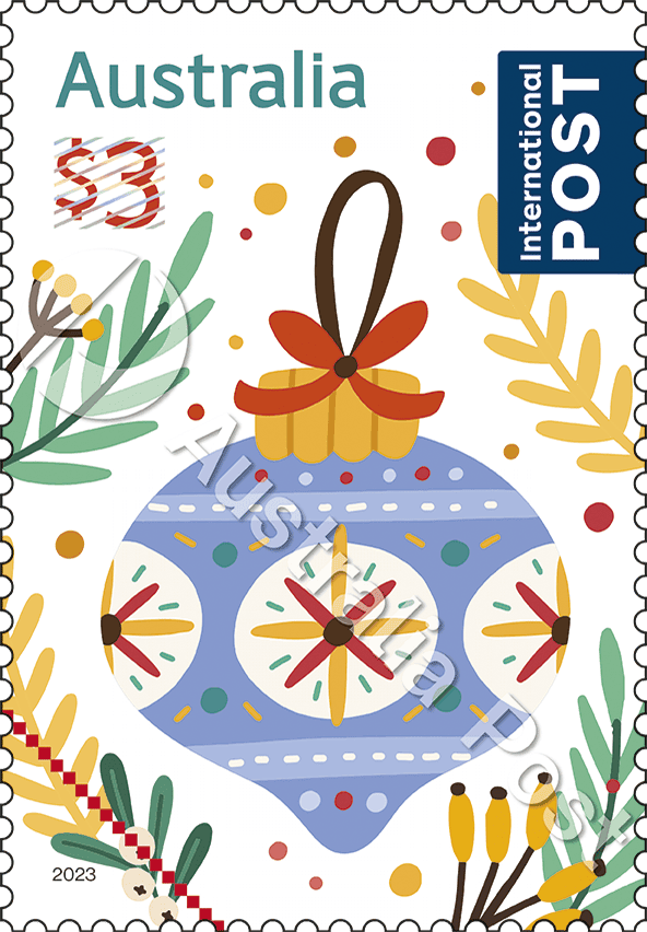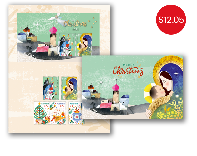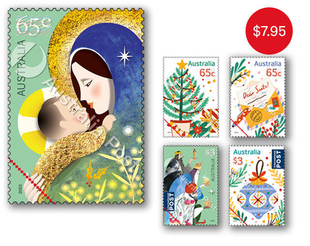 Each year, Australia Post releases a Christmas stamp issue, featuring domestic and international card-rate stamps that present both traditional and secular Christmas themes.