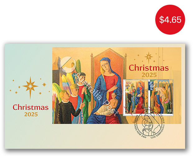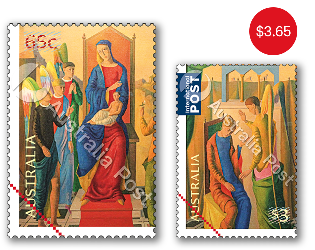 This year’s Christmas stamps feature details of an artwork by eminent Australian artist Justin O’Brien (1917–1996). For much of his life, Sydney-born O’Brien lived and worked overseas, where he was strongly influenced by Byzantine and Renaissance art. O’Brien is best known for his works on religious themes.