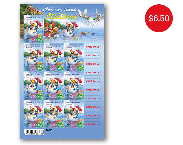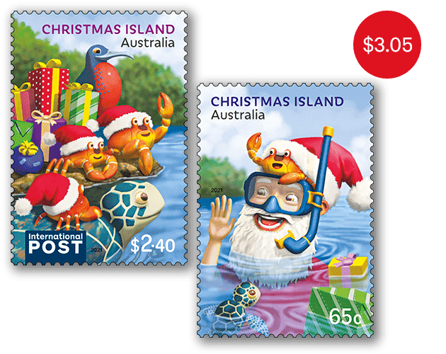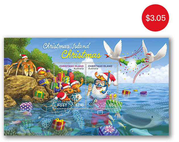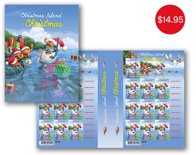 Australia Post has produced stamps for Christmas Island since 1993, and our light-hearted Christmas Island Christmas stamp series features Santa Claus interacting with various personified island fauna.