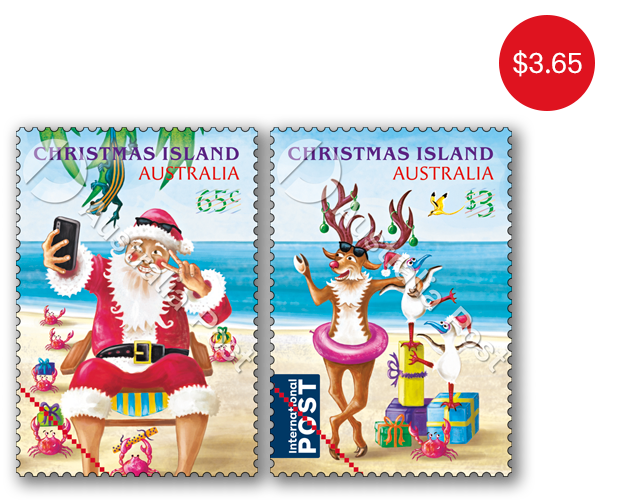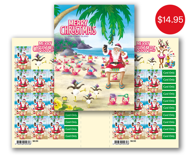 This Christmas Island Christmas Embellished Sheetlet Pack contains two stamp sheetlets from the stamp issue presented in a high-quality folder.