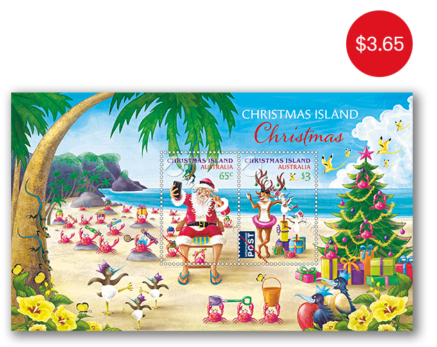 This minisheet is from the Christmas Island Christmas stamp issue and presents two stamps.