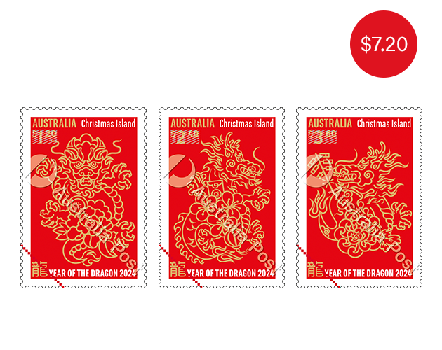 Set of Christmas Island Lunar New Year of the Dragon Gummed Stamps