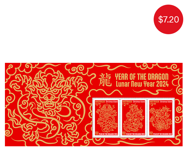 This minisheet is from the Christmas Island Lunar New Year of the Dragon stamp issue.