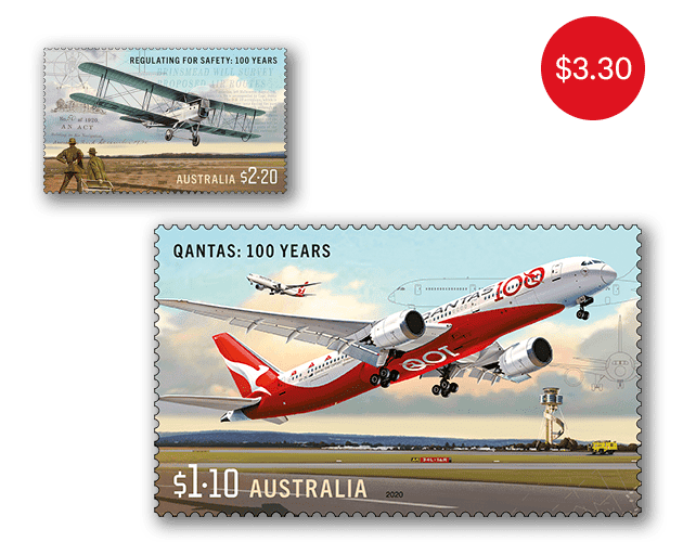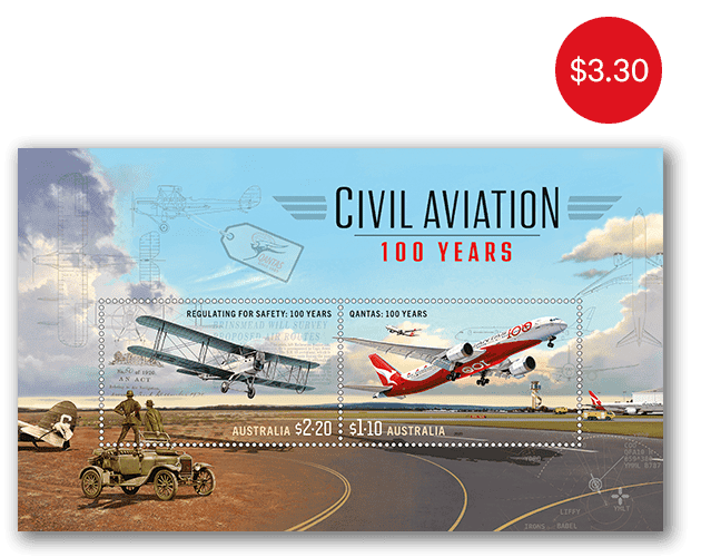 The Civil Aviation: 100 Years stamp pack contains the two stamps and minisheet from the stamp issue.