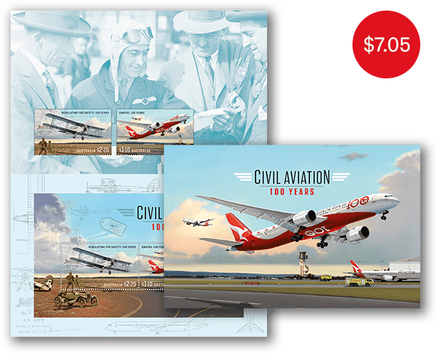 The stamps and minisheet in this issue form a scene that shows a progression from the early days of civil aviation administration, right up to the present-day, where Australia boasts one of the safest aviation systems in the world.