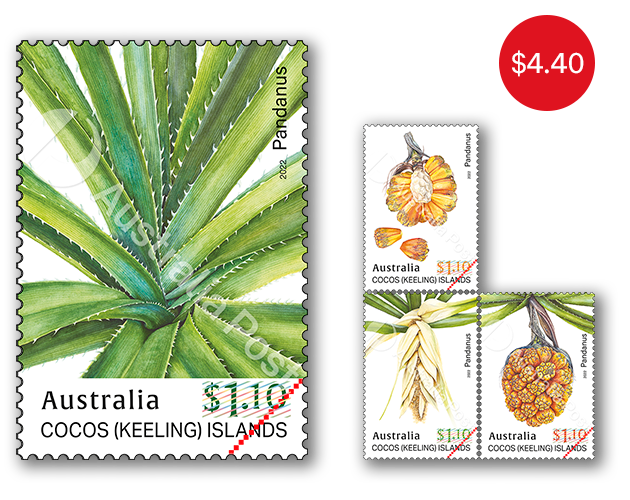 This set of stamps contains all four stamps from the Cocos (Keeling) Islands Pandanus stamp issue.