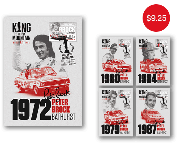 This year, 2022, is the 50th anniversary of Brock’s inaugural Bathurst triumph, and this stamp issue commemorates Brock’s illustrious record in this event.