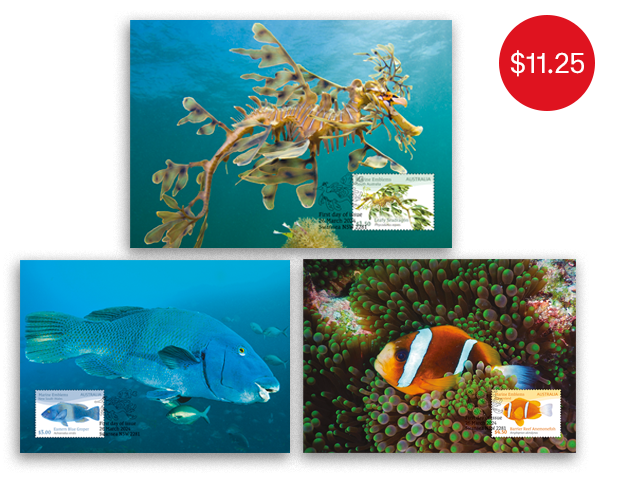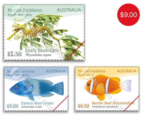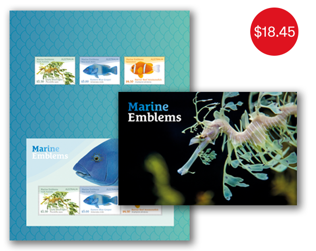 The States and territories of Australia have several official emblems or symbols. These include birds, flowers, mammals, fish and gem or mineral and tartan. Not all states and territories have all symbols. This issue on-sale from 28 March 20241 featuring marine or fish emblems is a sequel to the recent bird emblem issue of 2020.