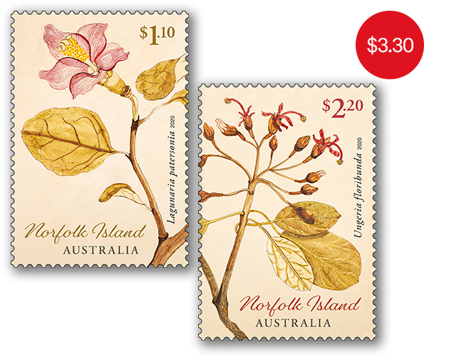 This set of stamps contains the two stamps from the Norfolk Island: Early Botanical Art stamp issue.
